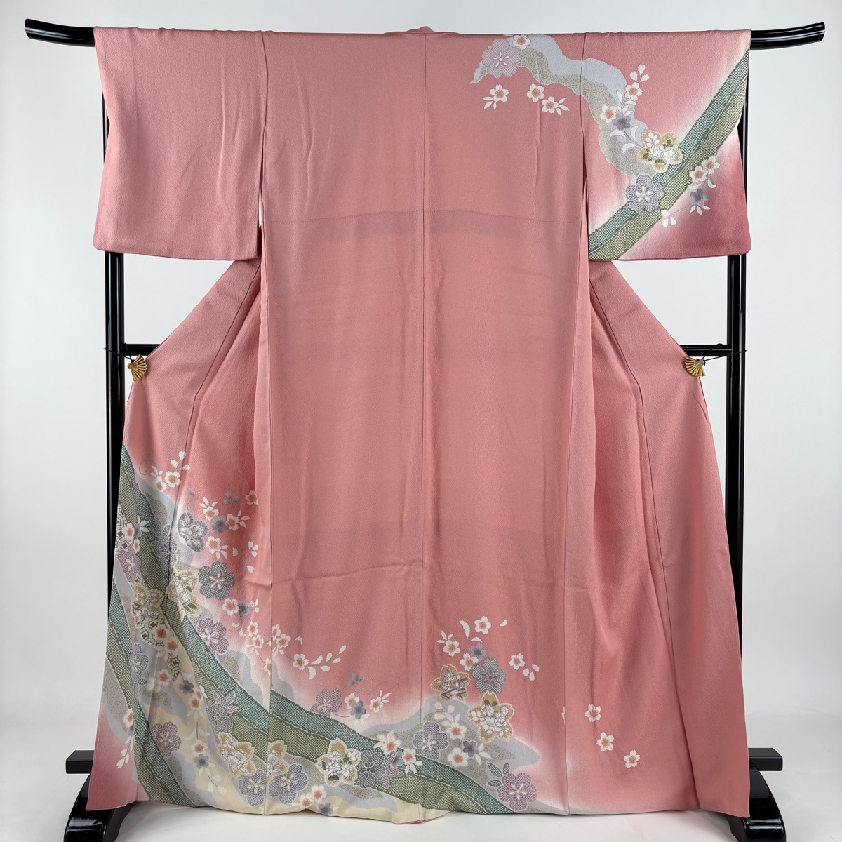 - 訪問着 身丈168.5cm 裄丈67cm M 袷 桜 疋田柄 金彩 絞り ピンク 正絹 秀品 【中古】