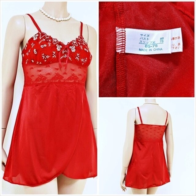 - PE4-A55//エレーヌ☆素肌にすっとなじむ軽やかな着心地☆エレガントな光沢レッド☆スリップ※一番安価で送料はゆうパケット250円