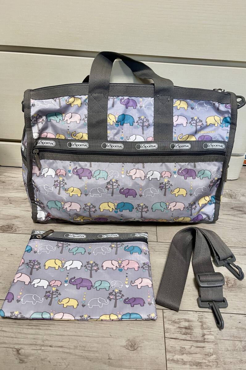 - 大きめレスポートサック LeSportsac ボストンバッグ 旅行バッグ 2WAY 象さん ポーチ付