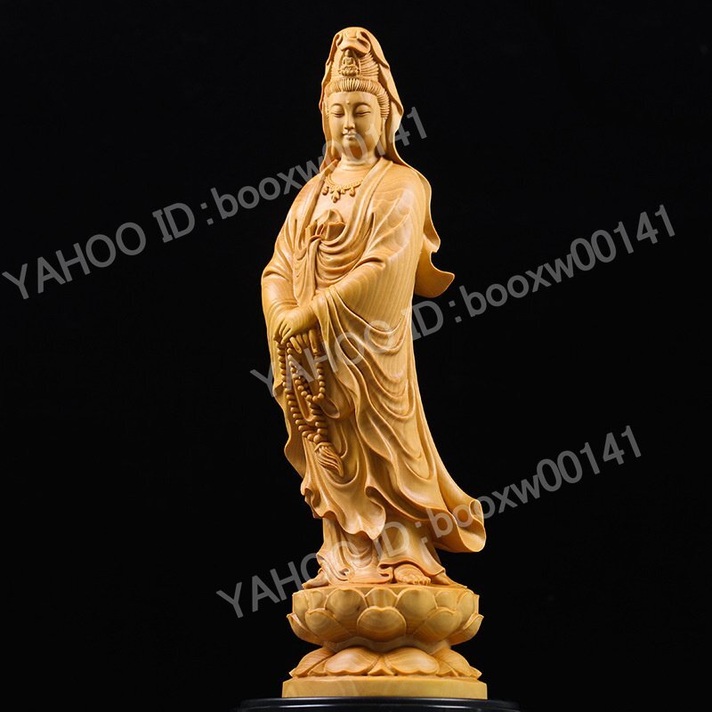 - 観音木彫 仏像 木彫り 観音像 観音菩薩 木彫仏像 木製彫刻 ツゲ製 高級木彫り 仏教美術 仏壇仏像 縁起物 祈る 開運 風水 高さ12cm hhw0047