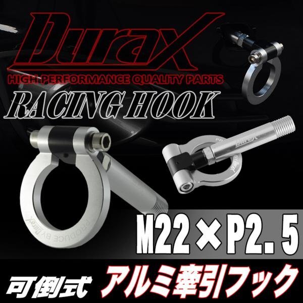 > DURAX正規品 シルバー 銀 けん引 フック 汎用 牽引フック トーイングフック M22×P2.5 可倒式 脱着式 折りたたみ式 軽量 ドレスアップ