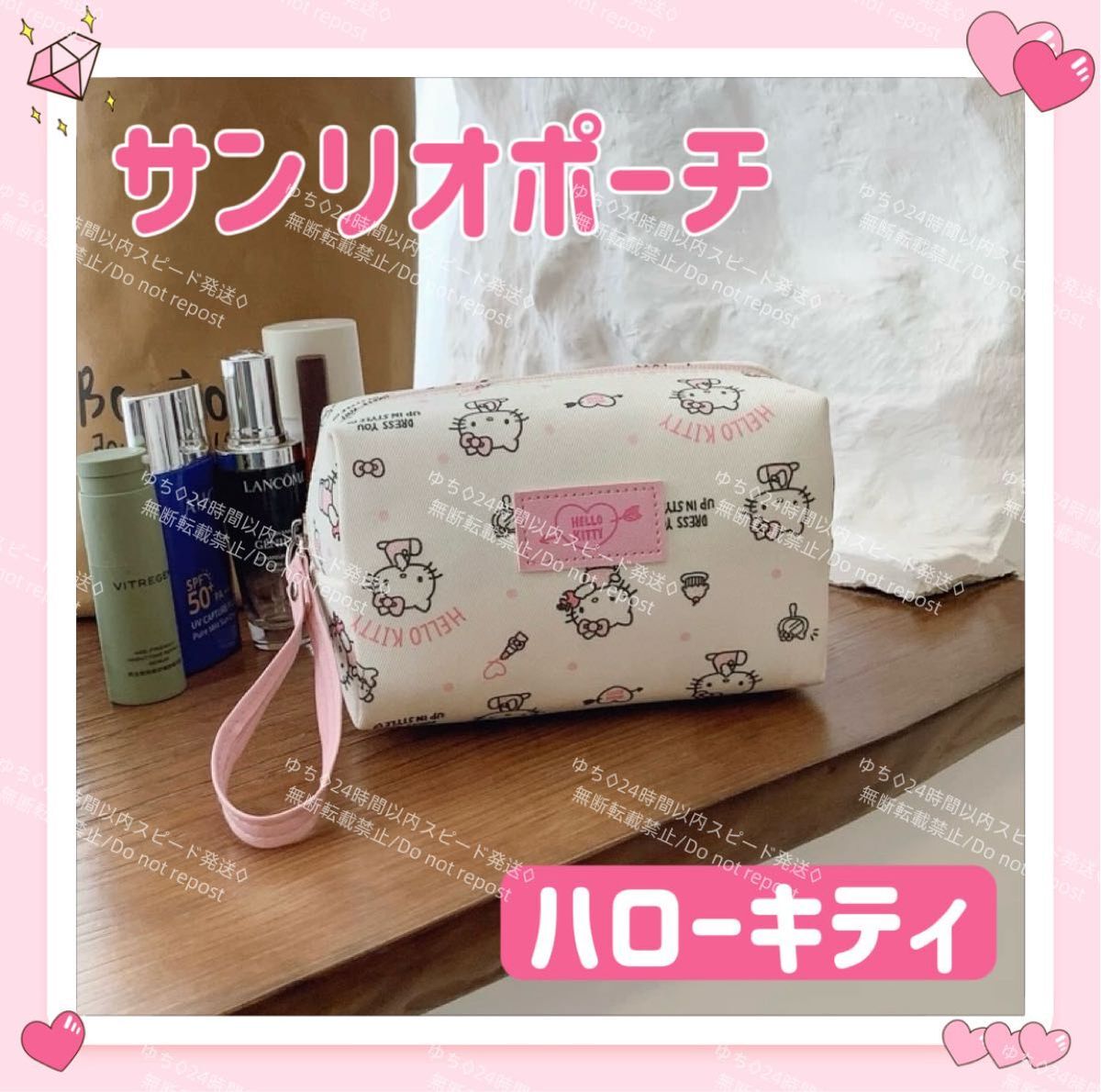 - 海外限定 サンリオ ハローキティ キャラメル ポーチ 大容量 多機能 メイク 化粧 小物入れ トラベル 可愛い ④