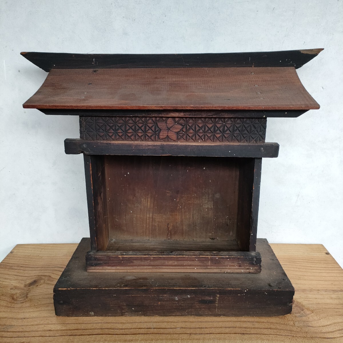 - 蔵出し初出し 厨子 神棚 木製 37cm×30cm×13cm 古い 神様 縁起物 民間信仰 神仏 工芸品 木工 時代物 当時物 祈り 古民具 古民家