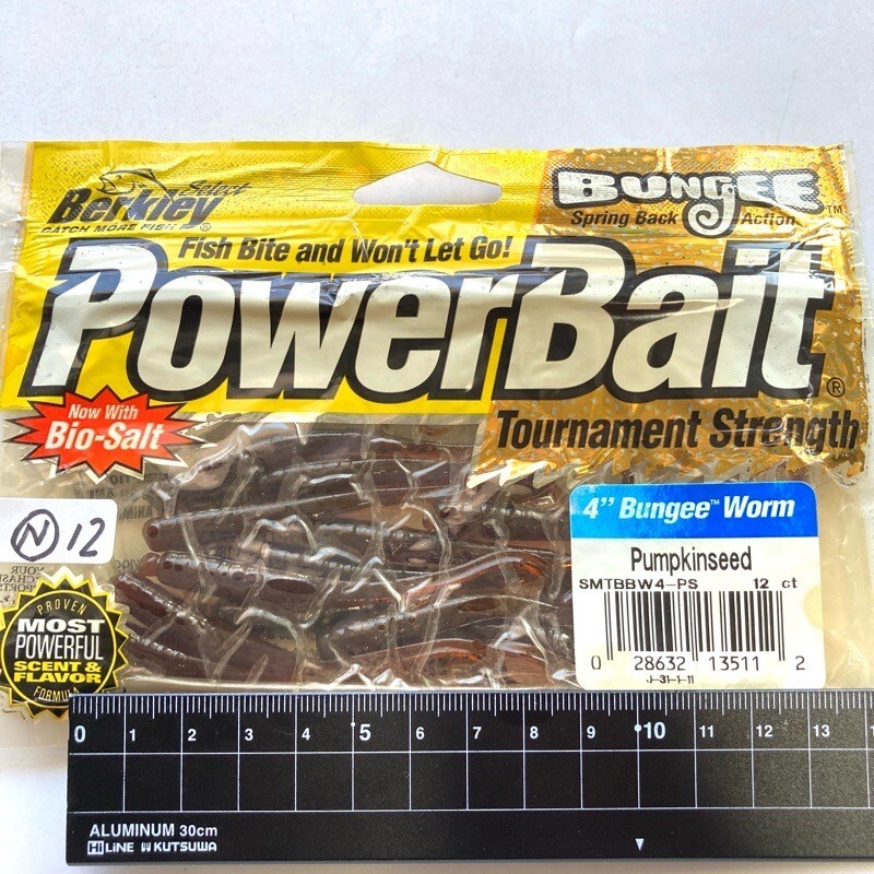- 815558 新品 バークレイ 4インチ バンジーワーム 12本 #パンプキンシード Berkley BUNGEE POWER WORM