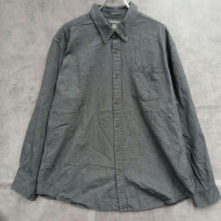 - エディーバウアー 定番 グレー 長袖シャツ 無地風 カジュアル古着【5954】