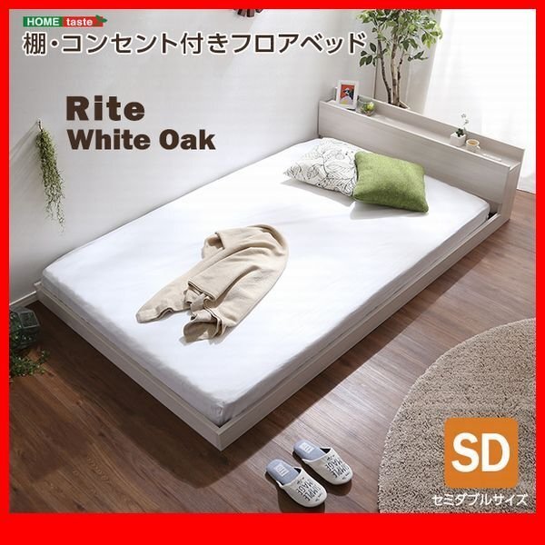 > セミダブルベッド★デザインフロアベッド セミダブル フレームのみ 2口コンセント付き宮棚 抗菌・防臭機能/ホワイトオーク/zz