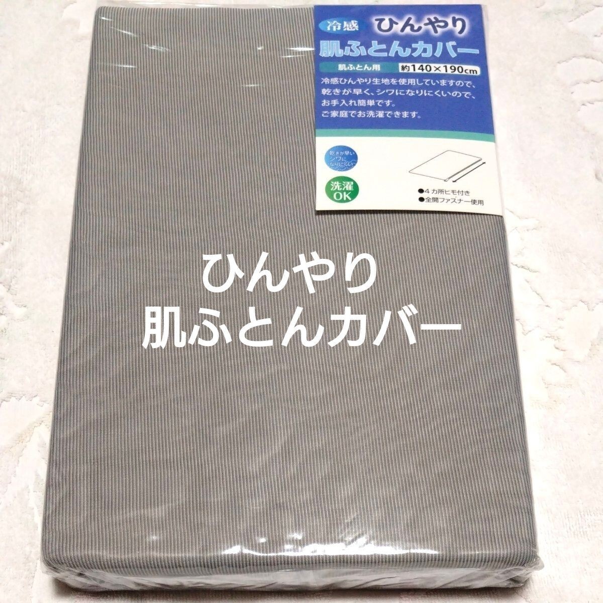 - 冷感 ひんやり肌ふとんカバー 140X190cm シングルサイズ 全開ファスナー 洗濯OK 4箇所紐付き