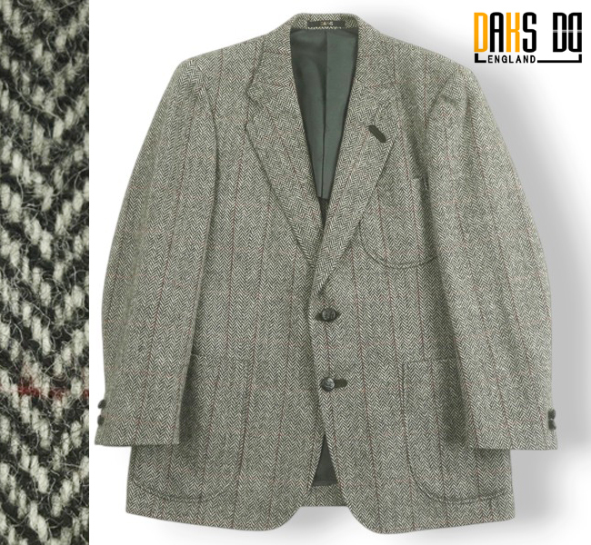 - 老舗 美品 DAKS ダックス 英国 スコットランド製 LAIDLAW 千鳥格子 ツイード 2つボタン ブレザージャケット AB6【参考価格¥88,000-】