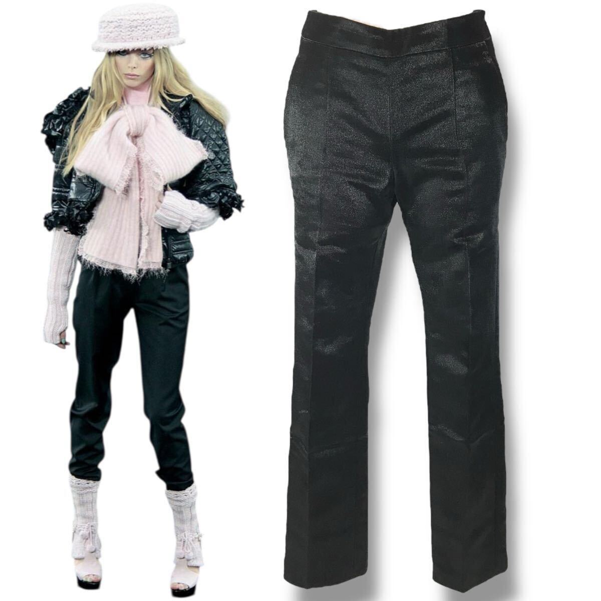 - d4 Vintage CHANEL 2009 シャネル ココマーク パンツ フォーマル ブラック スリット 36 イタリア製 P36315 V25238 ウール 正規品
