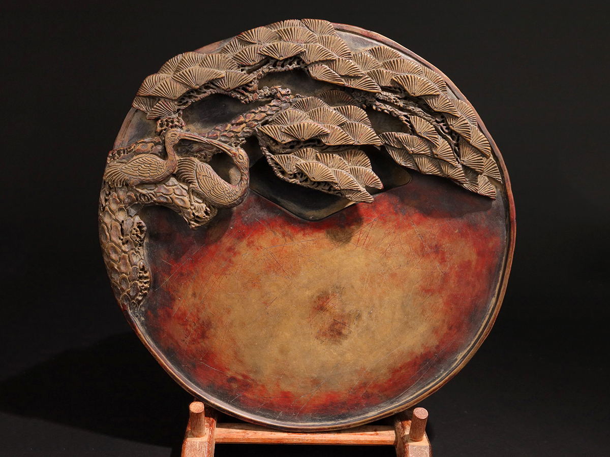 - ▽鴻▽清時代 在銘 端石彫 松鶴紋硯 端渓硯 唐硯 墨寶 書道具 時代物 中国古美術 骨董品