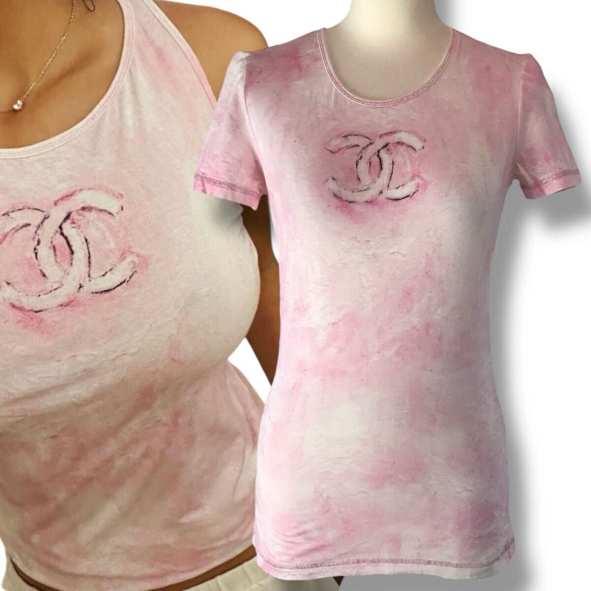 > d2 Vintage レア CHANEL 2009 シャネル ココマーク 半袖 Tシャツ タイダイ ピンク トップス カットソー レディース 正規品