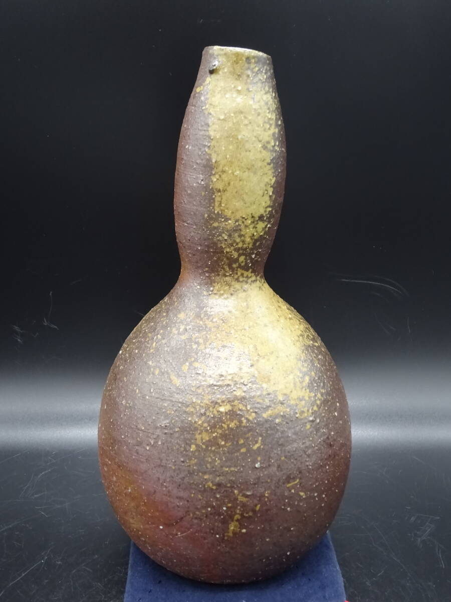 - 備前焼 人気実力作家 澁田寿昭(師:伝統工芸士鷹取関山、受賞歴多数)★備前瓢型花入れ 陶歴付 花器 茶碗 壺 茶道具