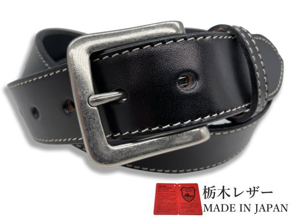 - 新品 栃木レザーベルト カジュアル 牛革 本革 一枚革 国産 メンズ レディース 35mm ステッチ 黒色 ブラック w060-M-BLACK-NATURAL