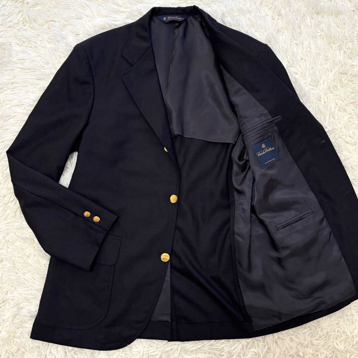 - 【極美品】XLサイズ Brooks Brothers ブルックスブラザーズ 紺ブレ ロゴ羊金ボタン テーラードジャケット 秋冬ブレザー ネイビーゴールド