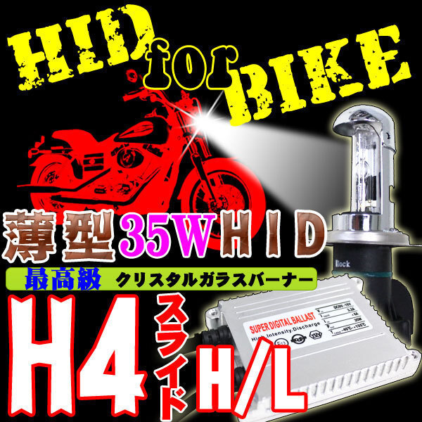 - バイク用 超薄型HIDキット35W H4スライド式 Hi/Lo 15000K ヘッドライト 6V-12V