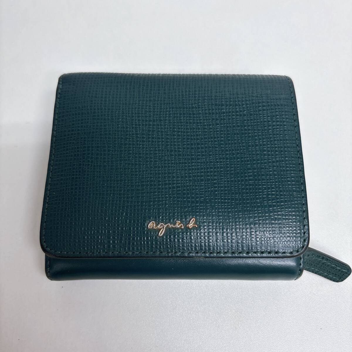 - agns b. アニエスベー 二つ折り財布 コンパクトウォレット 緑系 ダークグリーン系 中古