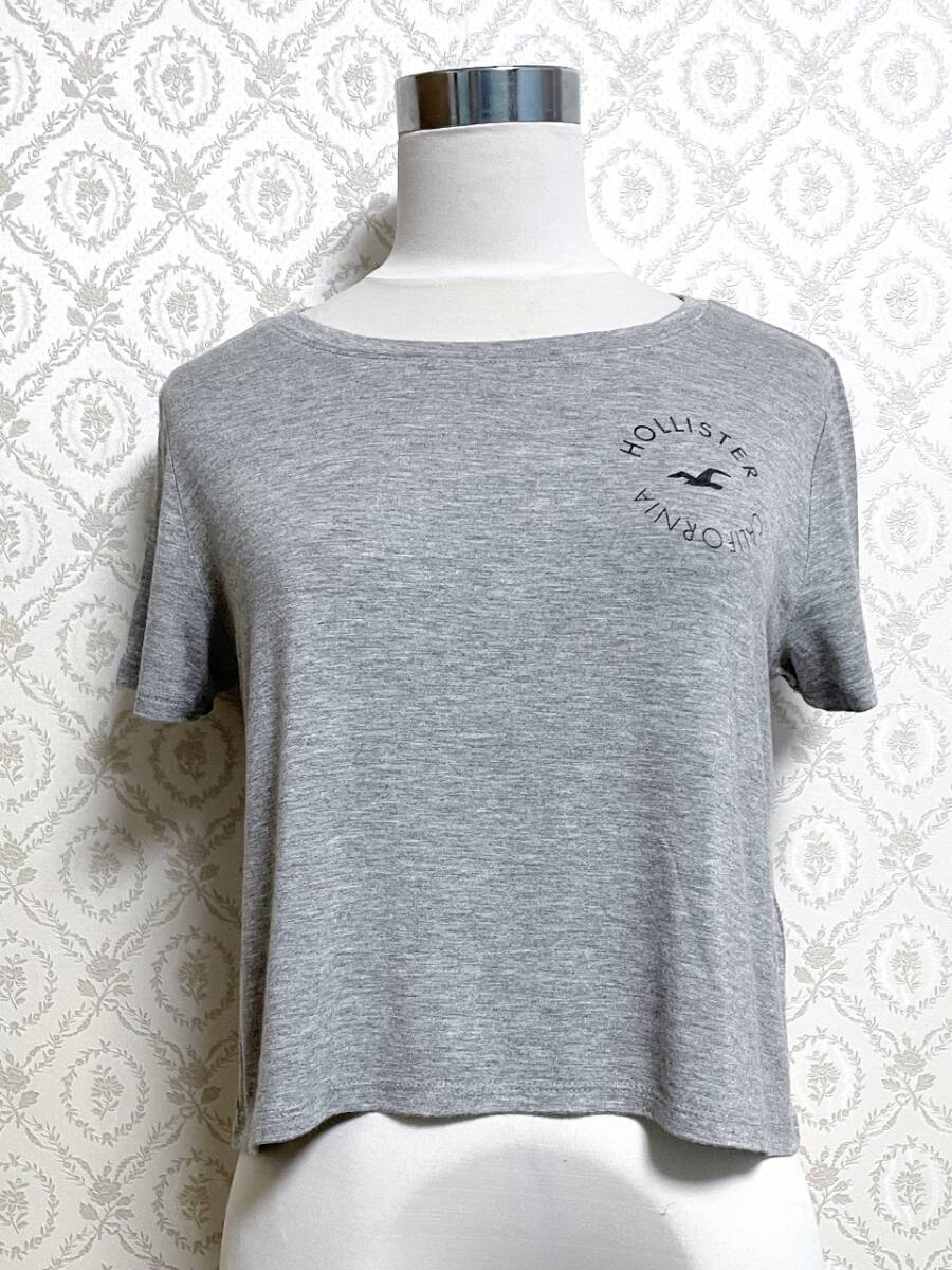 > アバクロ Hollister ホリスター グレー ショート丈 Tシャツ