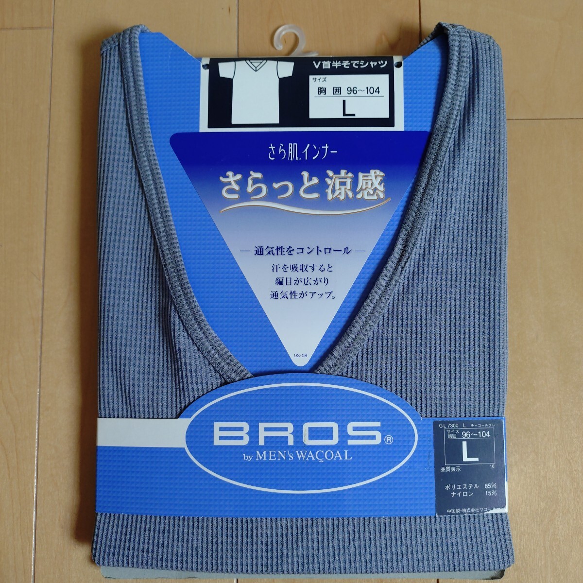 - MEN'S WACOAL BROS GL7300 さら肌インナー V首半そでシャツ サイズL チャコールグレー ワコール