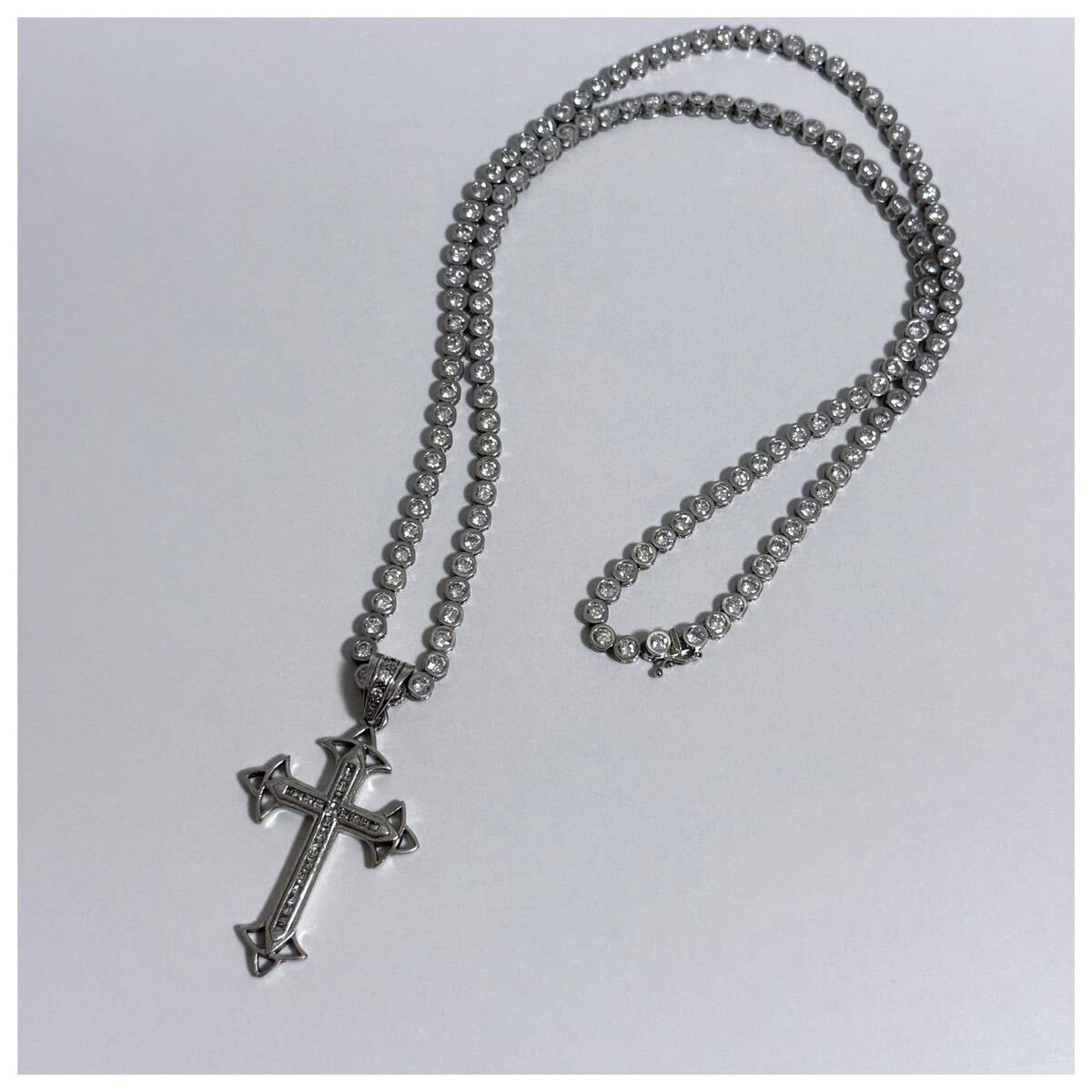 - シルバー925 sterling スターリング ロング テニスネックレス クロス ペンダント