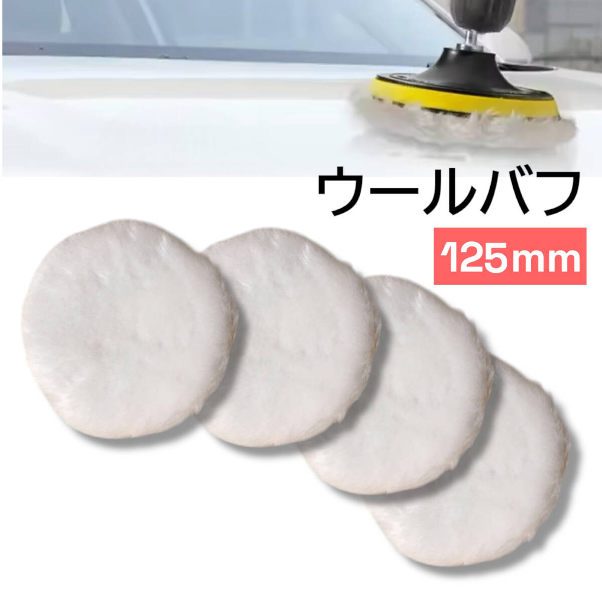- ポリッシャー バフ 4枚 セット 125mm 車 磨き用 人工ウール 洗車 電動 フェルトバフ パフ パッド 研磨 仕上げバフ