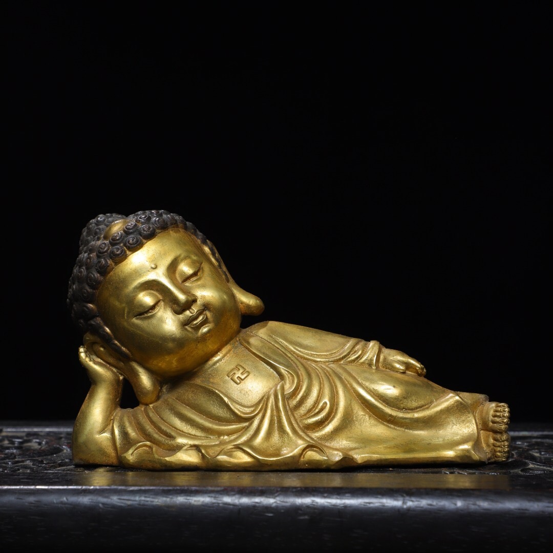 - 蔵友旧蔵出 銅製 塗金 睡仏 供奉仏像 希少珍品 貴重品 置物 古賞物 密宗密教 供養品 仏教美術品