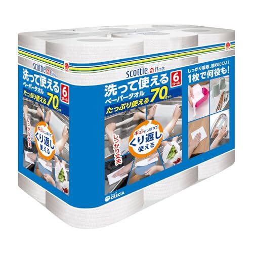- 6ロール (x 1) キッチンペーパー 洗って使えるペーパータオル 70カット 6ロール 無地 洗える スコッティ