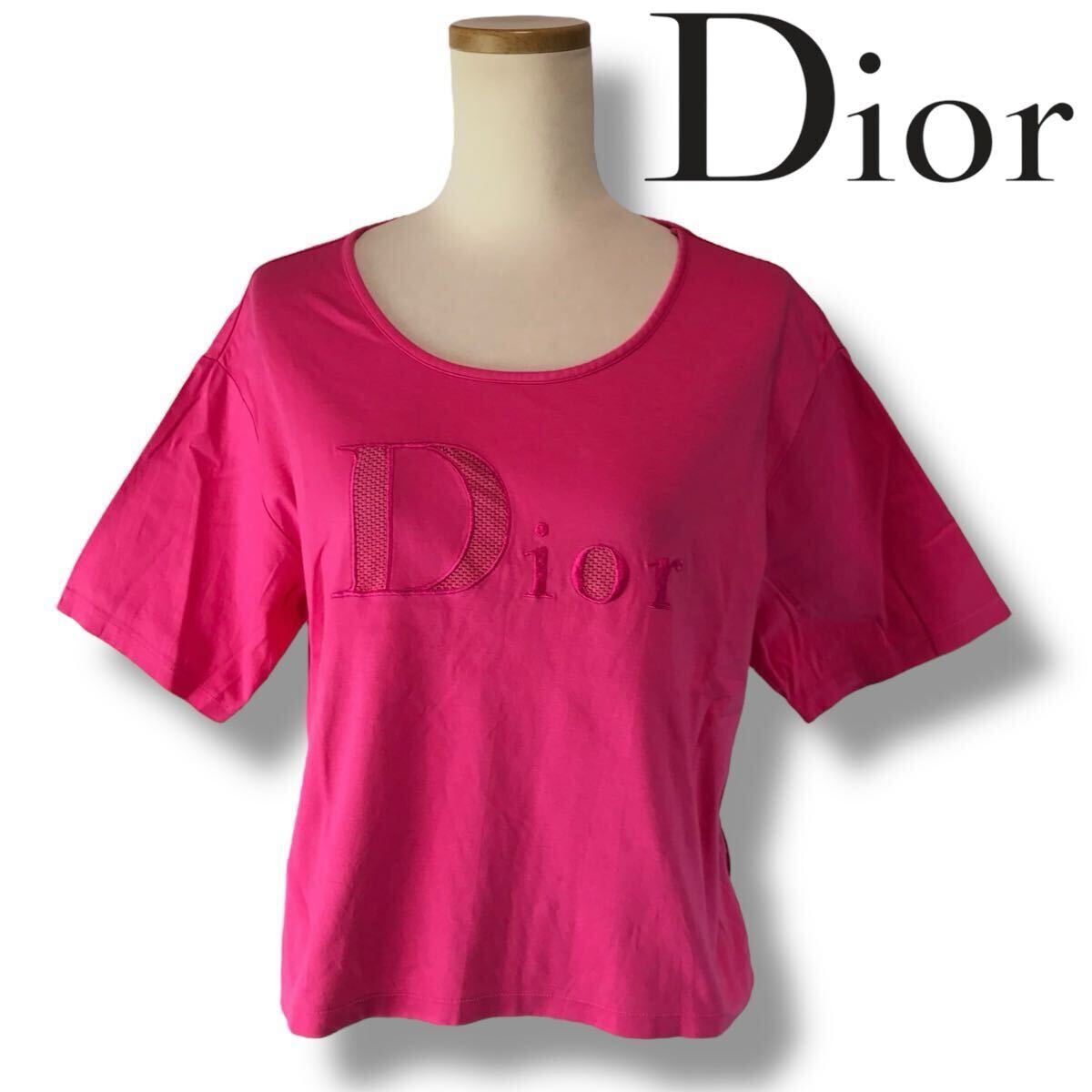 > d9 良品 レア Vintage Christian Dior クリスチャン ディオール ロゴ 半袖 Tシャツ カットソー トップス ピンク L コットン100% 正規品