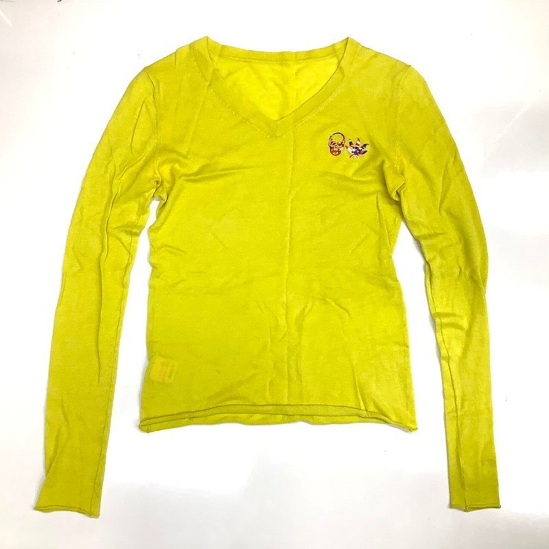 > ルシアンペラフィネ Lucien pellat-finet スカル ドクロ ニットカシミヤ混 イエロー Vネック サイズS【中古】JA-2