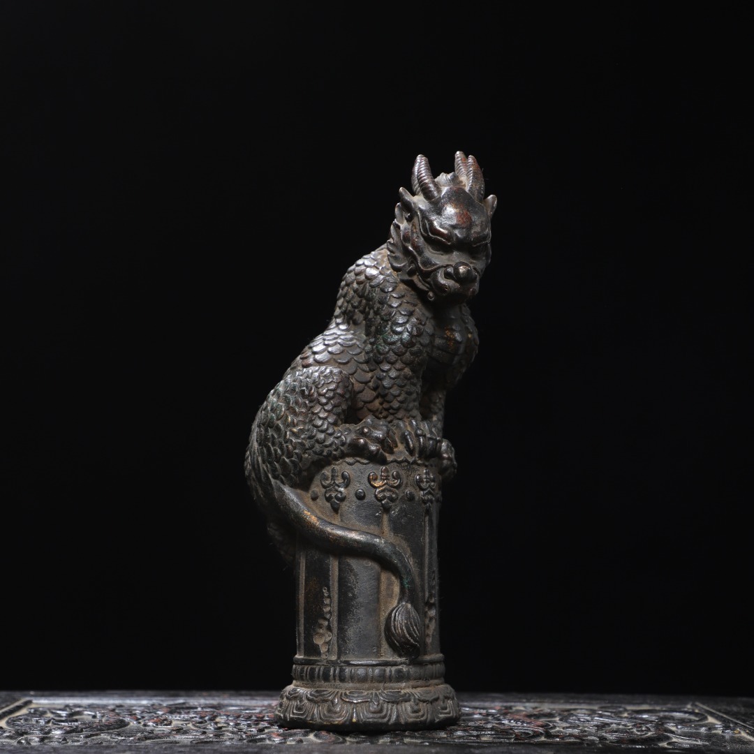 - 『館蔵珍品 銅製 細密彫 拓金 麒麟吸水獣 擺件 宗教 仏教古美術 供養品』稀少珍蔵品 古賞物 貴重物品 収蔵品 中国古美術 時代物 古董品