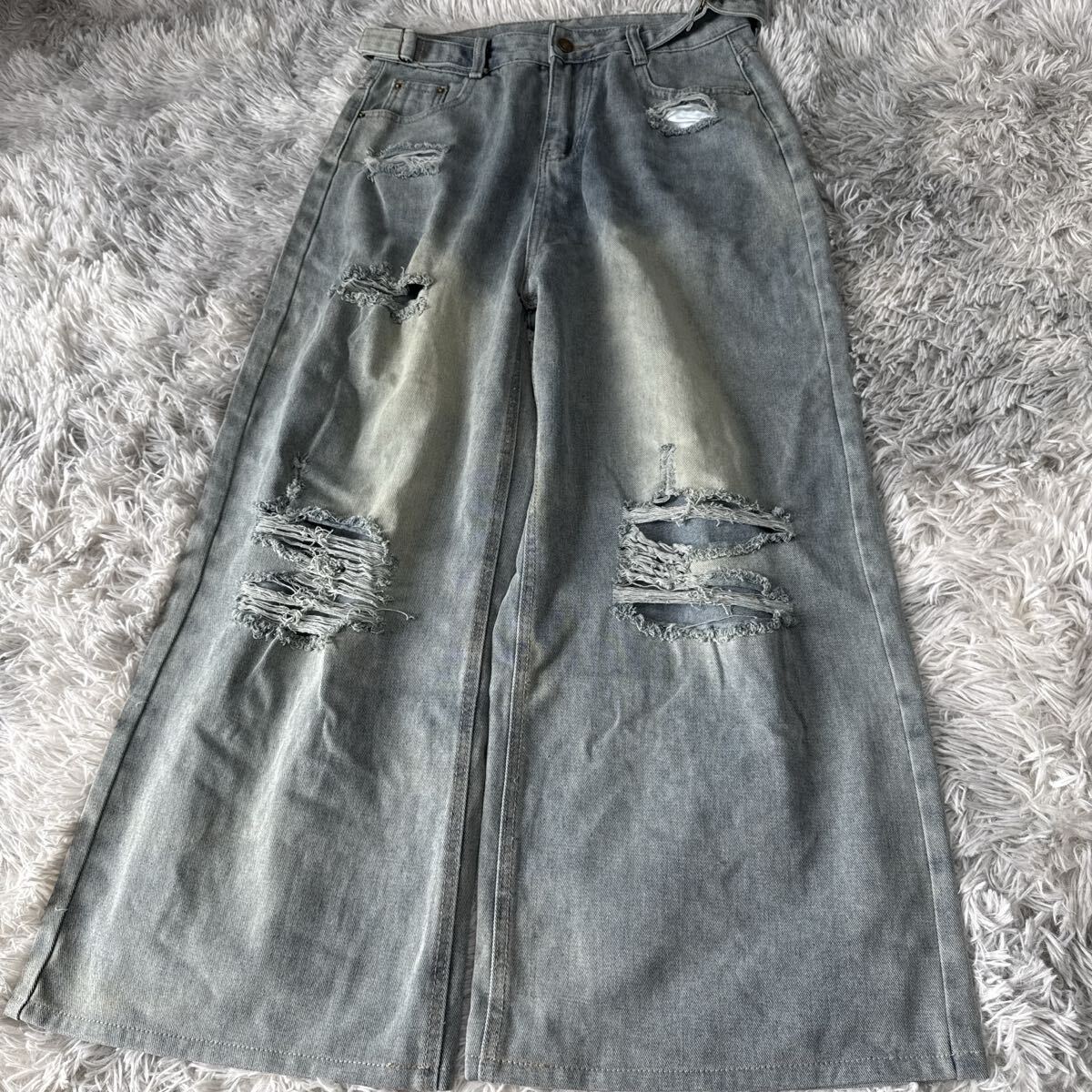 - 大きいサイズ サイドベルトクラッシュデニムパンツ XL★used44