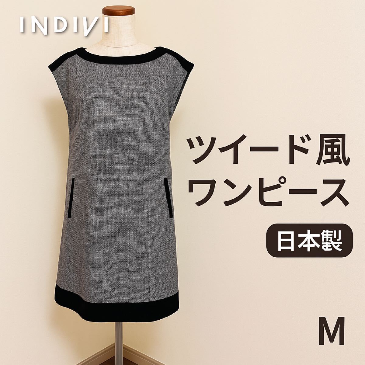 - INDIVI ワンピース ツイード風 グレー 日本製 秋冬 38 Mサイズ