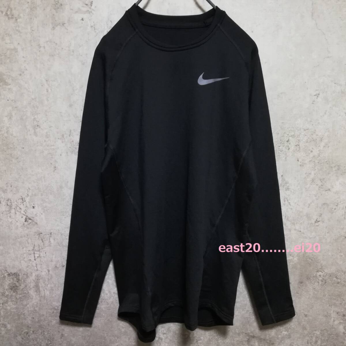 > NIKE DRI-FIT ナイキ メンズ ニット ロングスリーブ 長袖 ストレッチ Tシャツ XL ブラック 美品 保温性 ランニング トレーニング 送料無料