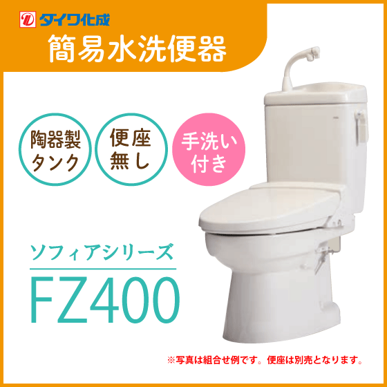 - 簡易水洗便器 簡易水洗トイレ クリーンフラッシュ「ソフィアシリーズ」 FZ400-H00(手洗付)・便座無し ダイワ化成