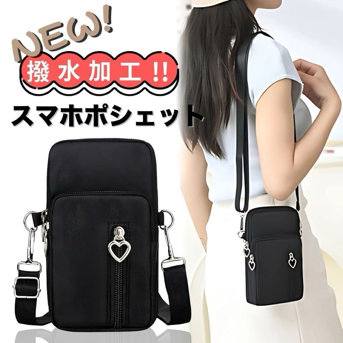 > スマホポシェット スマホポーチ ミニバッグ 黒 軽量 撥水素材 多機能ポケット付き ショルダーバッグ 旅行 レディース 斜め掛けバッグ 通勤
