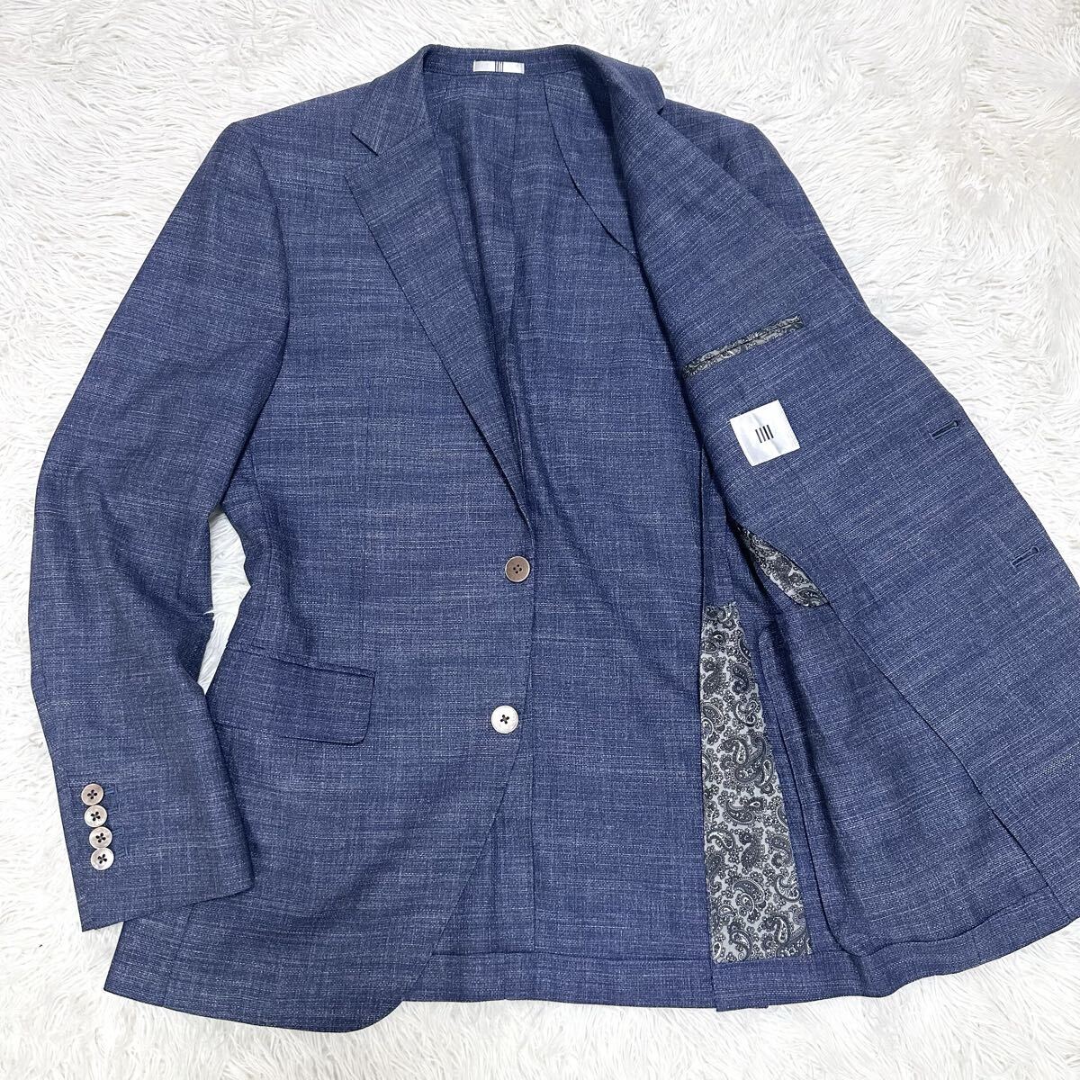 > SUIT SELECT【GUABELLO STUDIO 希少サイズXL相当 ペイズリー柄】スーツセレクト テーラードジャケット アンコン 貝ボタン ウール ネイビー
