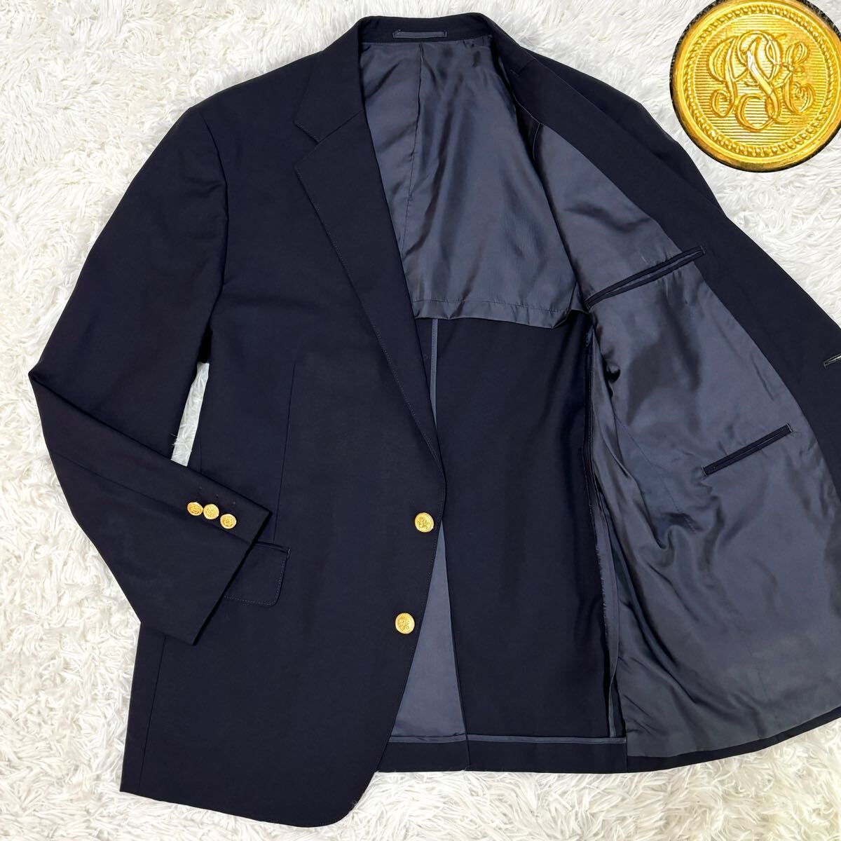 > 【未使用級】2XLサイズ J.PRESS ジェイプレス 紺ブレ パイピング赤 ロゴ刻印金ボタン テーラードジャケット 秋冬ブレザー JPRESS 大きい 3L