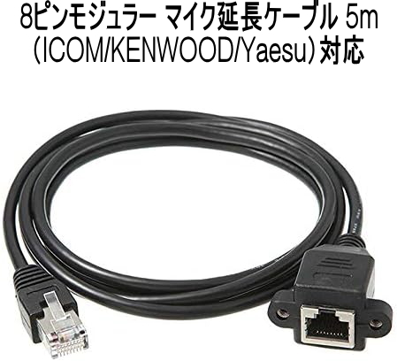 - 【送料無料】 ICOM KENWOOD YAESU対応 マイク延長ケーブル 5m 8ピン モジュラータイプ アイコム ケンウッド ヤエス(八重洲)
