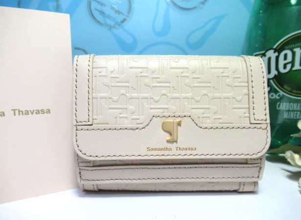- 送料無料 52%引 サマンサタバサ ST ロゴ エンブレム付 型押 牛革 ミニ財布 三つ折り財布 折財布 ベージュ 新品 証明書付 ユニセックス