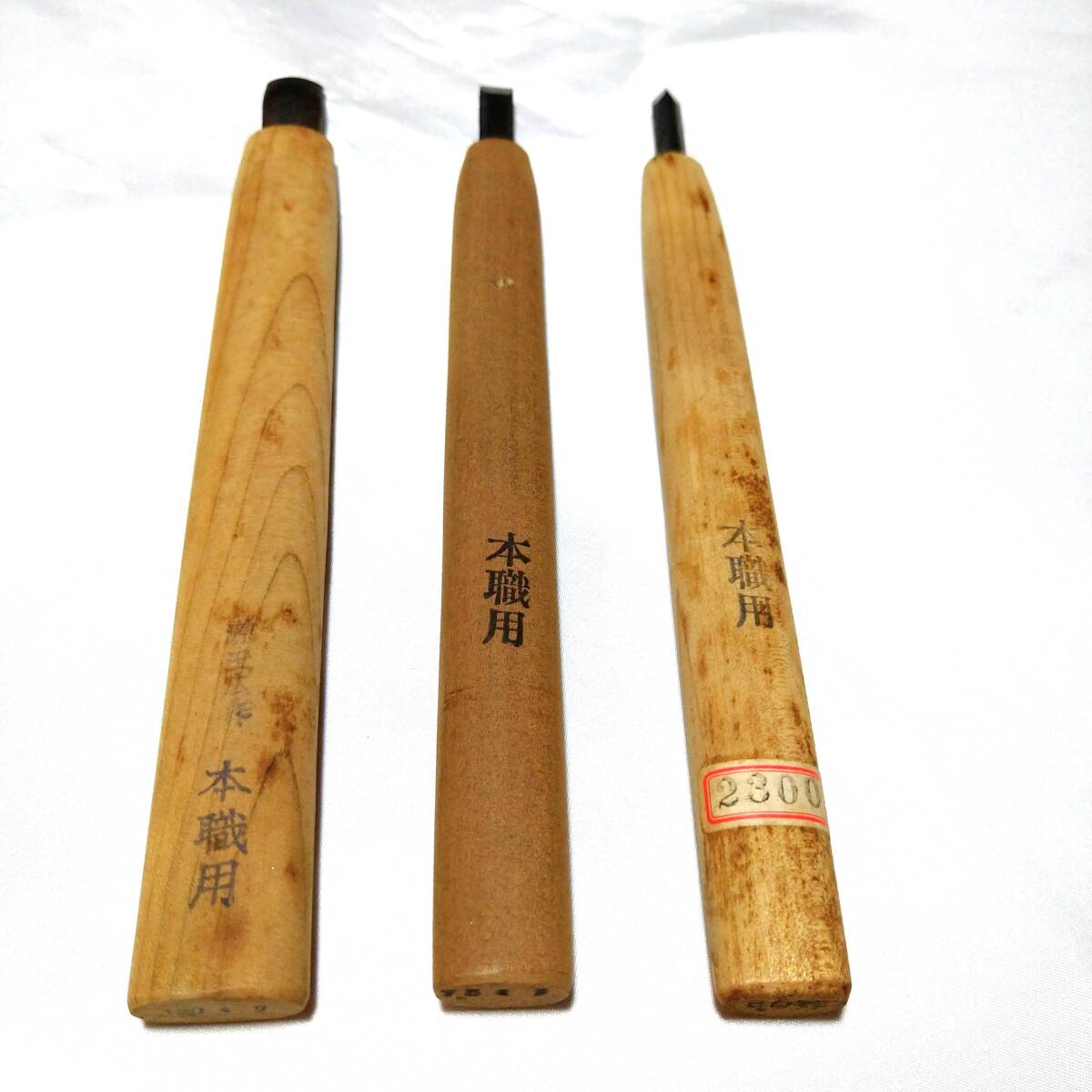 - №2未使用、保管品 日本製 本職用 彫刻刀 丸スクイ(12.0㎜) 平刀(7.5㎜) 三角刀(6.0㎜) 計3本セット