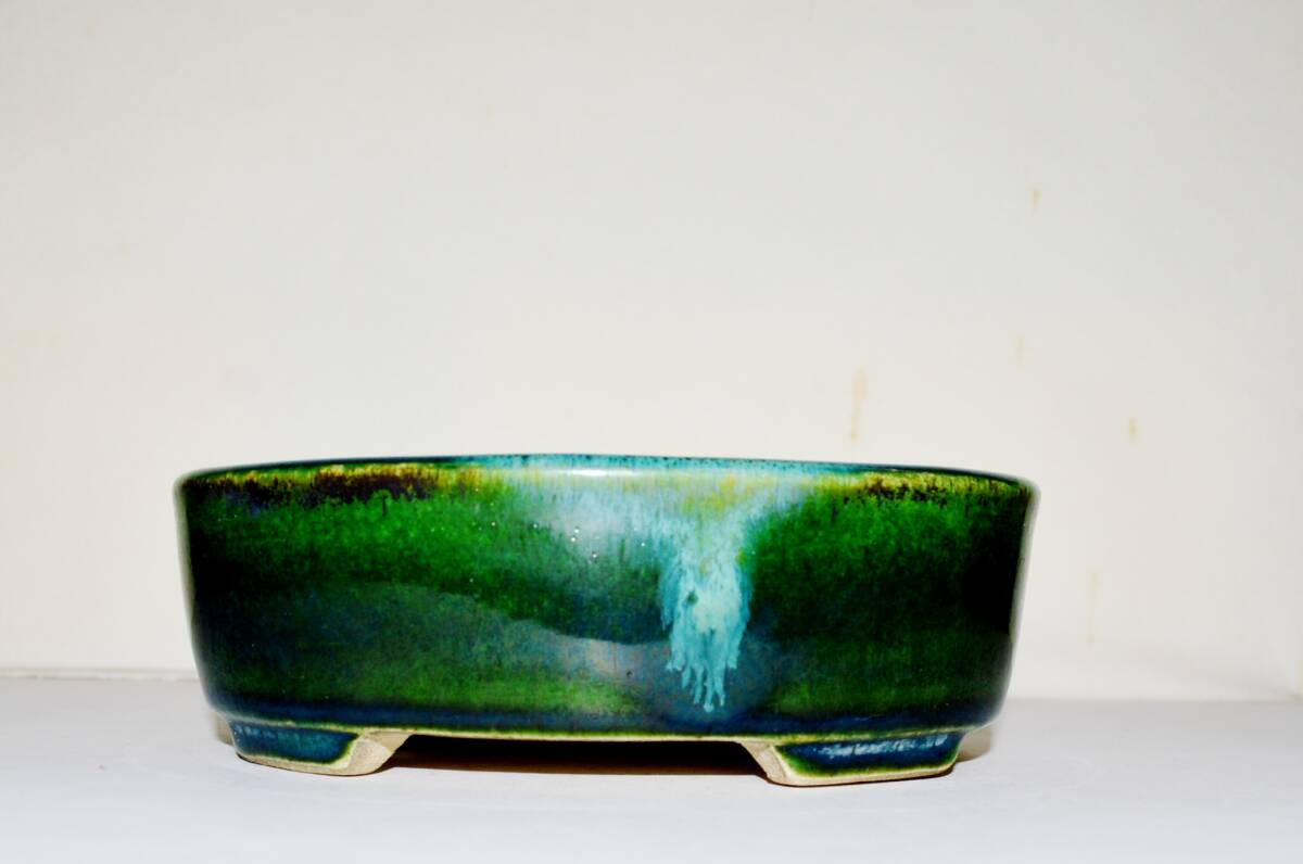 - 平安東福寺の様な釉味・人気品薄和鉢作家 「寺畑さとみ(加藤里美)」 寺畑陶園 窯変織部釉に白釉 切立小判形の鉢