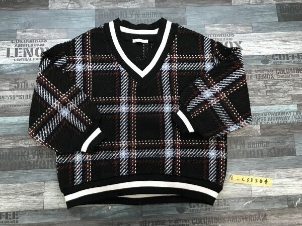 - YUKKAM レディース チェック柄 ツイード ニットプルオーバーカットソー F 黒水色など