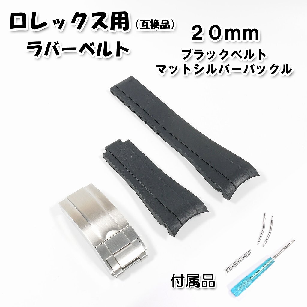 - ロレックス用 互換ラバーベルト バックル付き 20mm ブラック M銀.