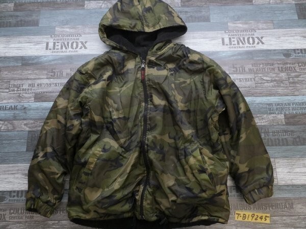 > GRIND グラインド リバーシブル 迷彩柄 & フリース ジップアップパーカー 黒×カーキ 140