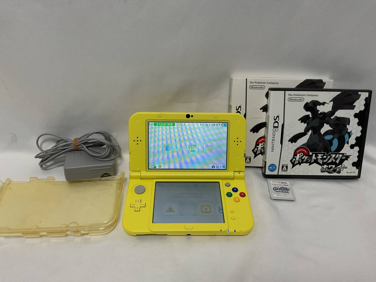 - 任天堂 Newニンテンドー3DS LL RED-001 ピカチュウ イエロー 本体/カバー/充電器/ゲームソフト2本 中古ゲーム機