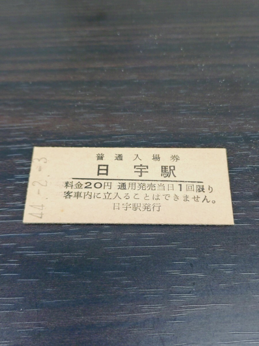 - 国鉄 硬券 普通入場券 日宇駅 昭和44年