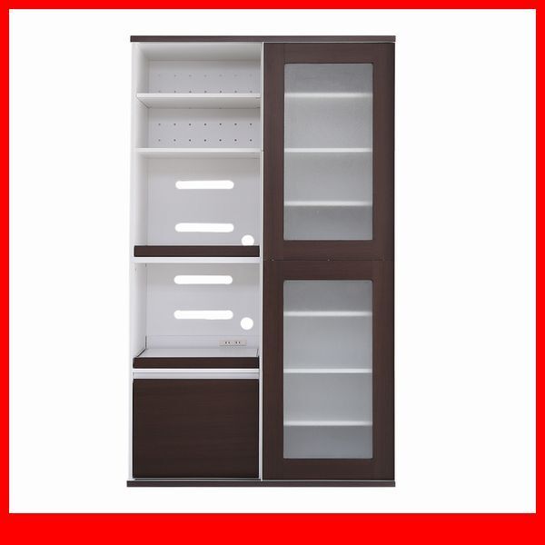 - 食器棚★ガラス引戸食器棚 家電収納庫/スライド式ガラス扉/幅100cm コンセント付き/濃茶 ダークブラウン/a1