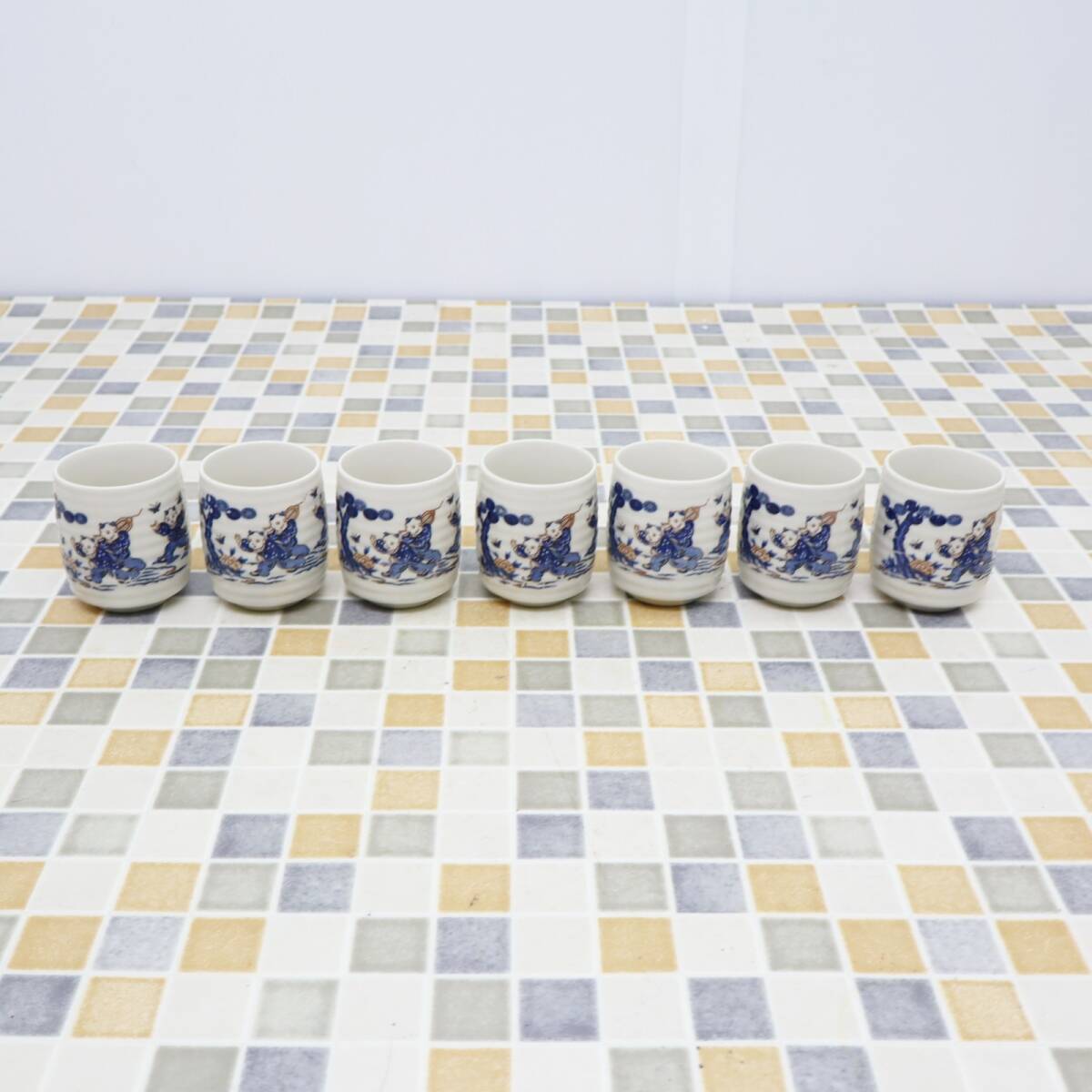 - ◆ 直径約6cm 深さ約7㎝|中国 湯呑み 7客セット| |骨董 古美術 ■O4086