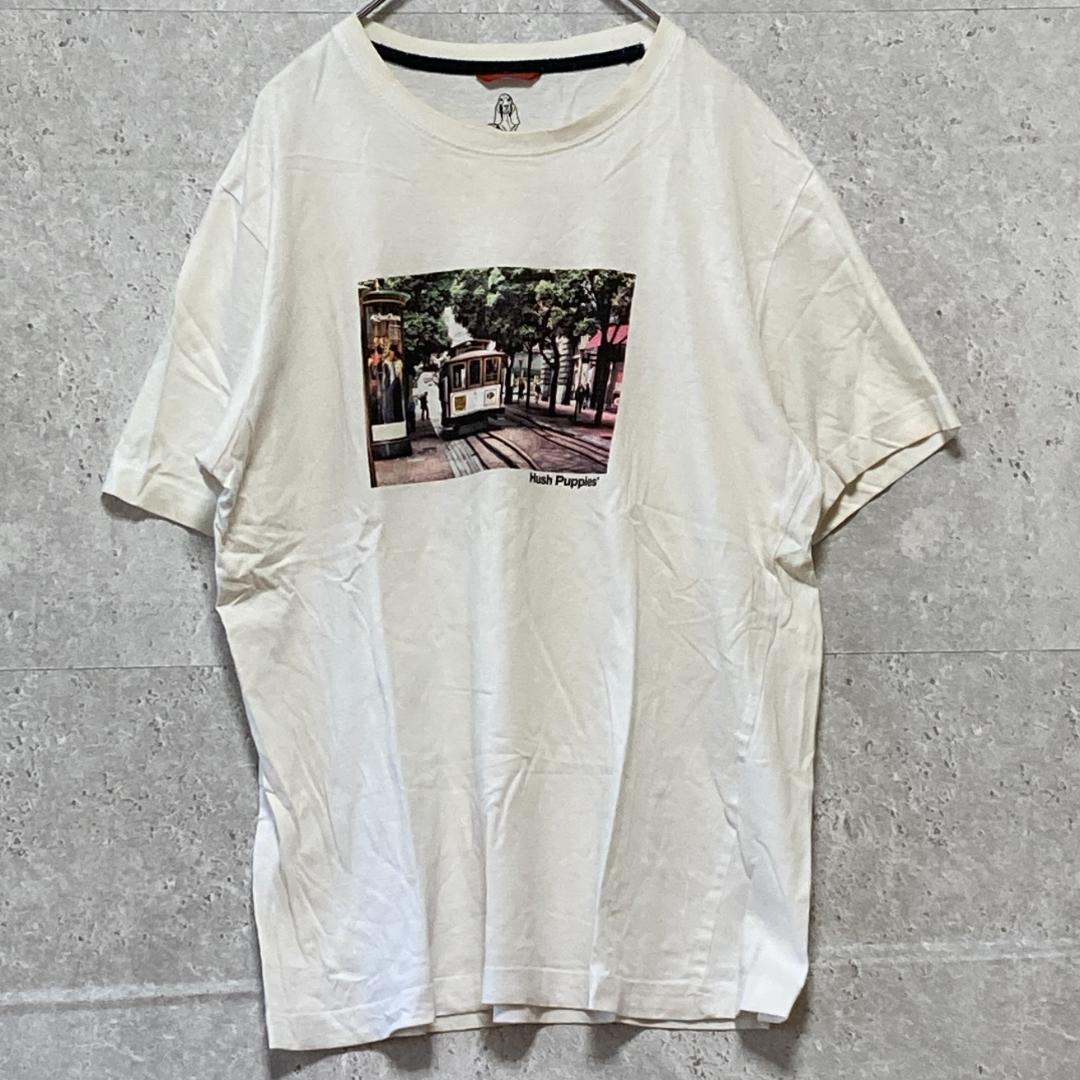 > ハッシュパピー(L)ビックプリントTシャツ*半袖*綿100%*伸縮性*透け感*白