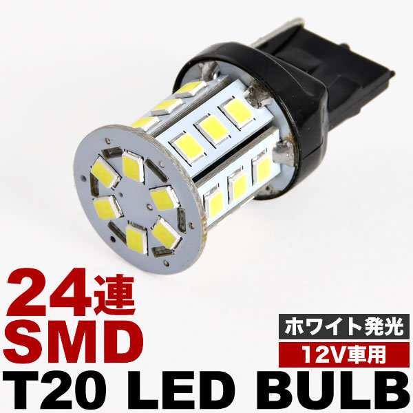 > 12V 24連 SMD T20 シングル LED 電球 単品 ホワイト バック球 ナンバー灯 ハイマウントストップ球