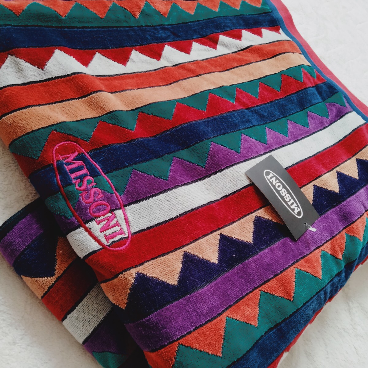 - 未使用*MISSONI*タオルケット*ミッソーニ*ルクソール*140×190*綿100%*マルチカラー*ストライプ
